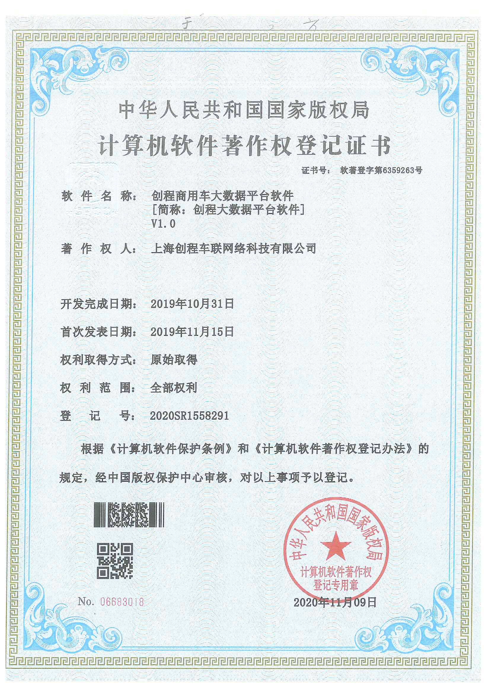 創(chuàng)程商用車大數(shù)據(jù)平臺(tái)軟件V1.0