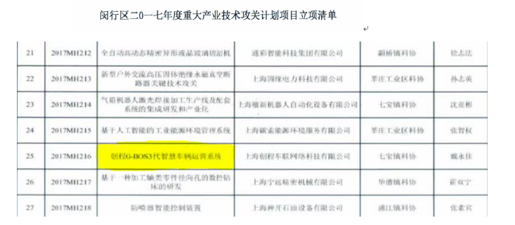 2017年11月8日,上海創(chuàng)程喜獲上海市閔行區(qū)科學(xué)技術(shù)委員會(huì)2017年重大產(chǎn)業(yè)技術(shù)攻關(guān)計(jì)劃項(xiàng)目資金支持。
