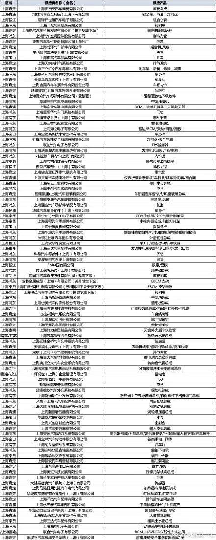 由于上海有著非常完整的汽車零部件產(chǎn)業(yè)鏈,和長三角的零部件制造基地一起為中國的汽車工業(yè)輸送著足夠有性價(jià)比的零部件。下面是排摸的基于上汽集團(tuán)體系下的產(chǎn)品供應(yīng)鏈的情況。