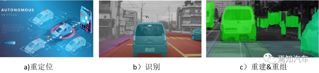 對(duì)于智駕域最重要的感知源處理而言(無論是視覺點(diǎn)云、激光點(diǎn)云還是毫米波點(diǎn)云),總體可以分為四個(gè)層面的處理過程:場景重建、要素識(shí)別、關(guān)鍵目標(biāo)重組和自車重新定位。
