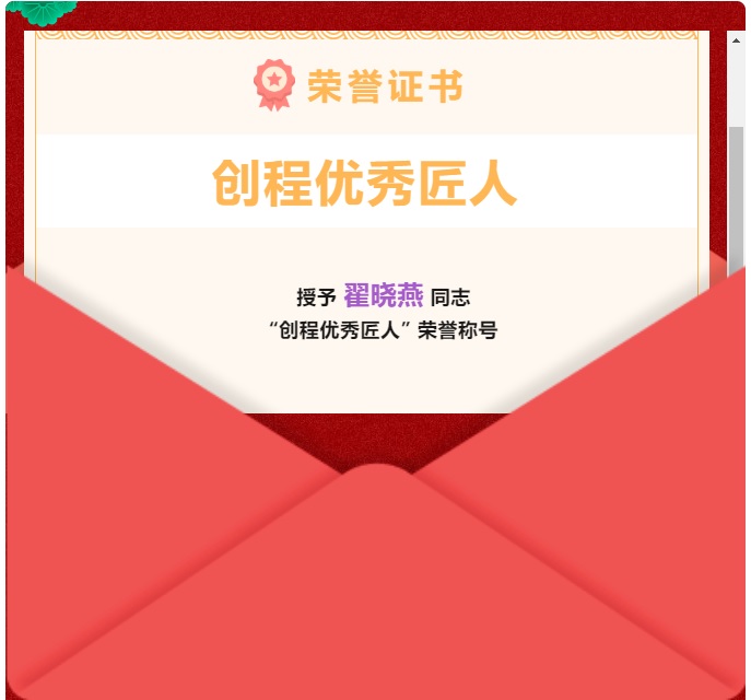 2023年第二季度評優(yōu) —— 創(chuàng)程優(yōu)秀匠人【翟曉燕】