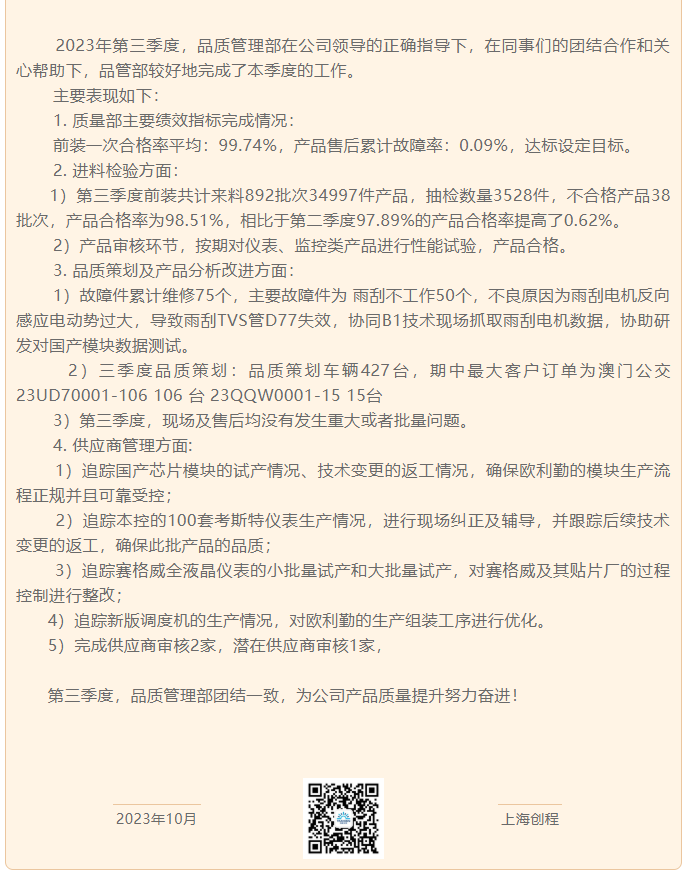 2023年第三季度評優(yōu) —— 優(yōu)秀團(tuán)隊(duì)【品管部】